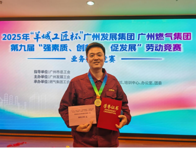 廖永亮在《2025年“羊城工匠杯”广州发展集团、广州燃气集团第九届劳动竞赛》中,凭借精湛技艺与拼搏精神,首次参赛即荣获维修项目第三名,展现了金燃智能员工扎实的专业素养与工匠本色。