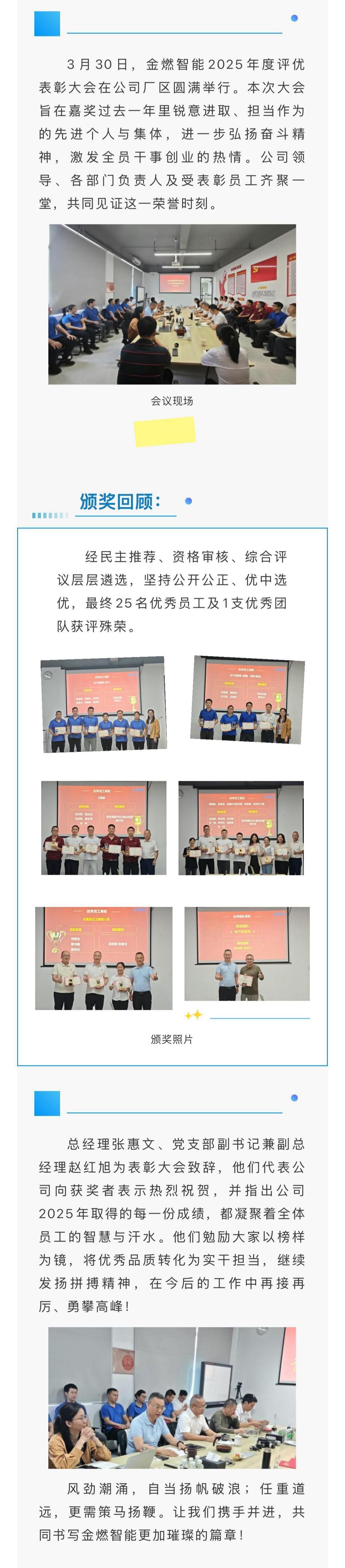 表彰先进,树立标杆 ——金燃智能举行2025年度评优表彰大会