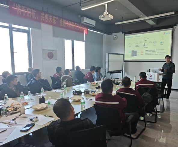 公司党支部副书记、副总经理赵红旭为新员工致辞,从企业文化传承到个人成长路径,深入浅出地阐述了如何成为一名优秀的“金燃人”,鼓励新员工快速适应、积极作为,在岗位上绽放光彩,共同助力公司高质量发展。